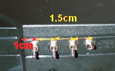 Once they work, get your ruler out! Measure on the front of the Xbox about 1cm in and make a mark with your sharp tool. Then measure 1.5cm along to the right and make another mark, repeat this until you have 4 marks in total: