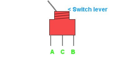 Get a switch and solder one of the outer terminals (A or B - Figure 1) to switch 1 terminal X (Figure 2). Then solder the middle (common terminal) to switch 1 terminal Y (Figure 2). Remember, when using these switches the terminal A is on when the switch is flicked in the direction of terminal B and vice versa (See the switch diagram). This will help you when mounting the switches. Solder the other switches in exactly the same way (using the same terminal [A or B] as you did for the first switch). Once this is done try testing your switches to see if they work properly. If they don't go over your soldering again and make sure you're using the correct terminals (Remember, its one middle terminal and one outer terminal per switch).